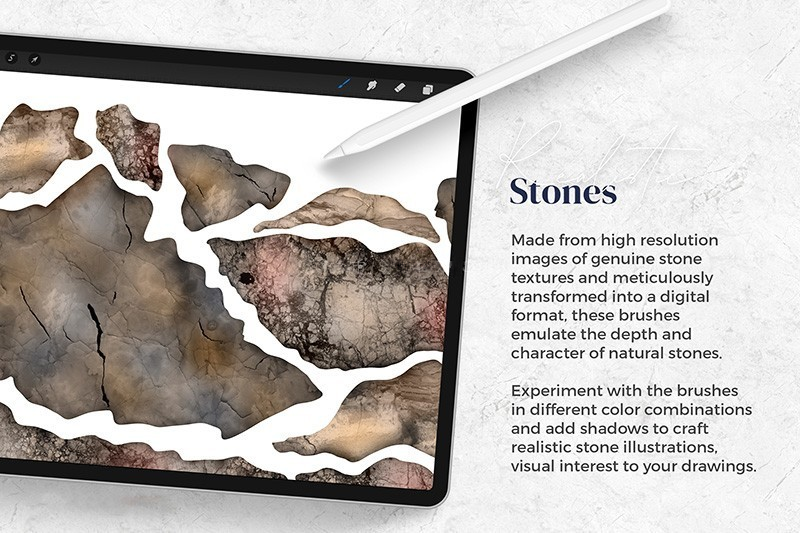 Whether you're a professional illustrator, designer, or hobbyist, this brush pack offers a versatile toolkit for adding elegant, realistic stone finishes to your artwork — all within Procreate.