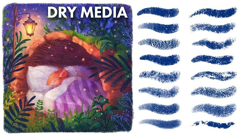 To enhance the traditional feel, the set also includes 25 high-resolution paper textures, adding a rich, tactile depth to your digital canvas. Whether you're sketching characters, painting backgrounds, or designing whimsical scenes, this brush pack has everything you need to create professional and heartfelt illustrations.